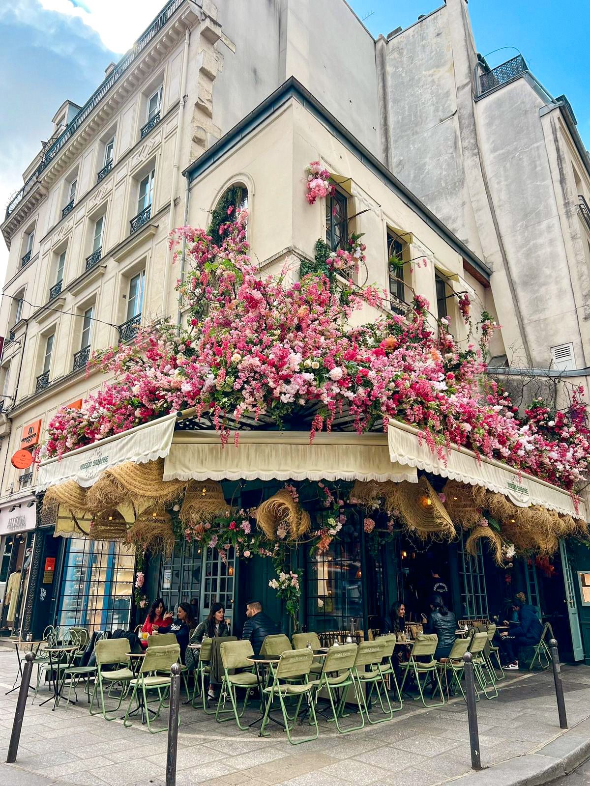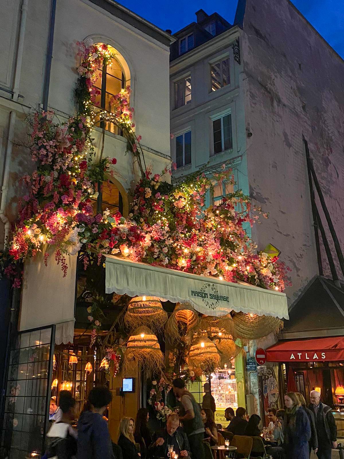 Dans deux salles privatisées de 40m² chacune, ces deux artistes ont créé des œuvres florales qui embellissent depuis quelques jours les devantures des restaurants Maison Sauvage à Paris.