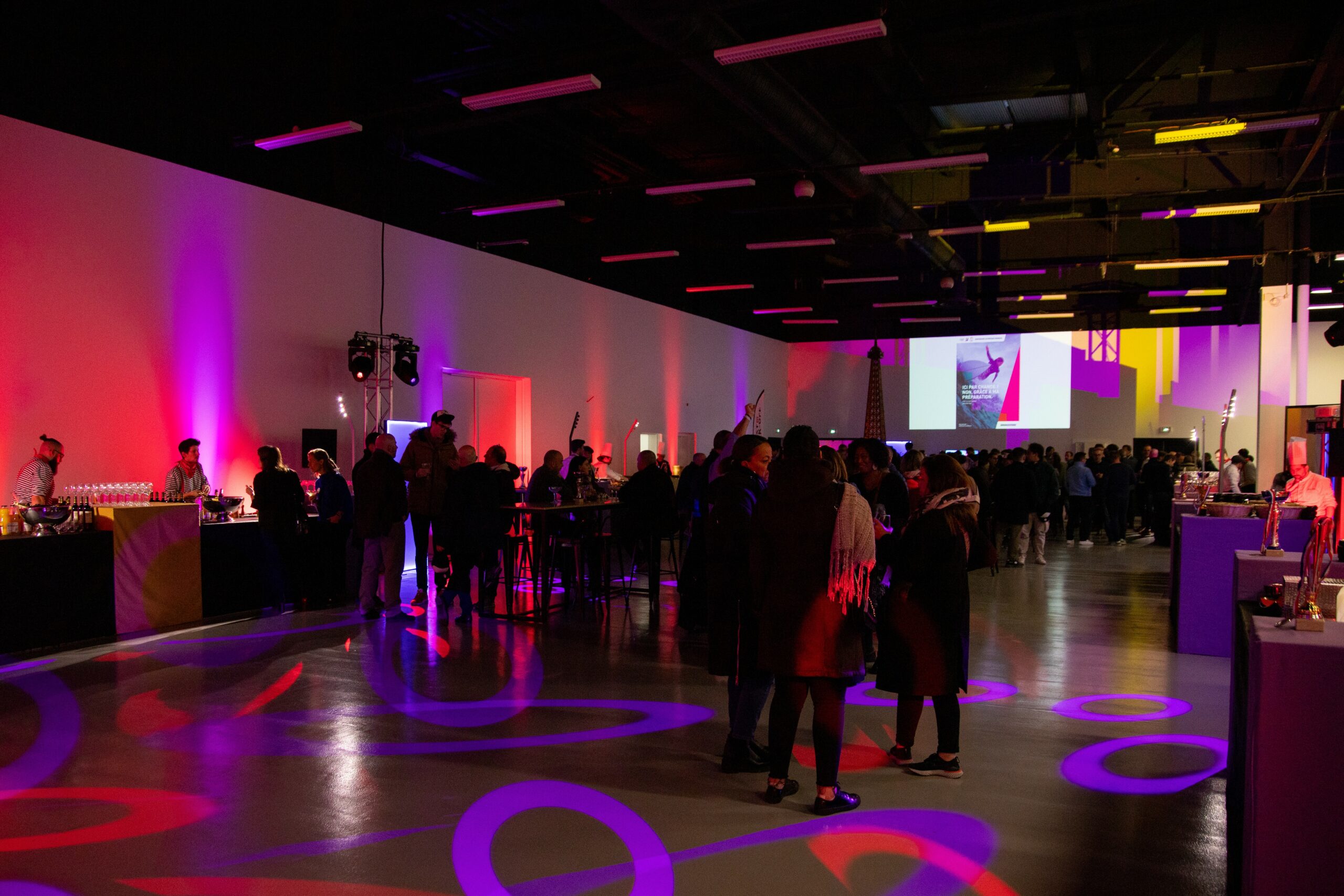 ✔ Une session plénière, un cocktail dînatoire, suivi d’une soirée ont eu lieu dans notre salle Madrid de 800 m². Les équipes techniques de Bridgestone ont utilisé nos beaux murs écrans pour personnaliser l’ambiance selon leurs préférences ;